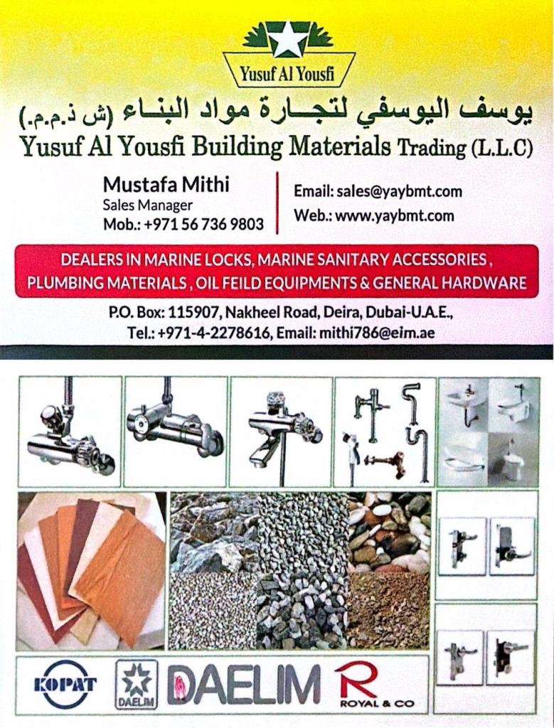 Dealers in building mat., gen. hardwear , fastners, tools, sanitary,etc.